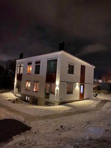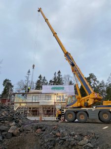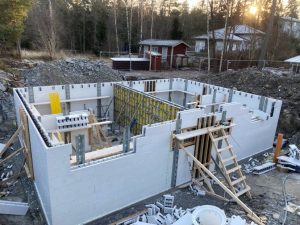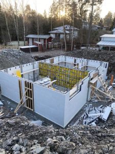 Vi hade som uppdrag att konstruera grunderna och källarvåningen i förberedelse för prefabricerade stomme utförd av Derome.