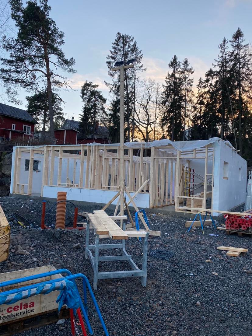 Vi hade som uppdrag att konstruera grunderna och källarvåningen i förberedelse för prefabricerade stomme utförd av Derome.