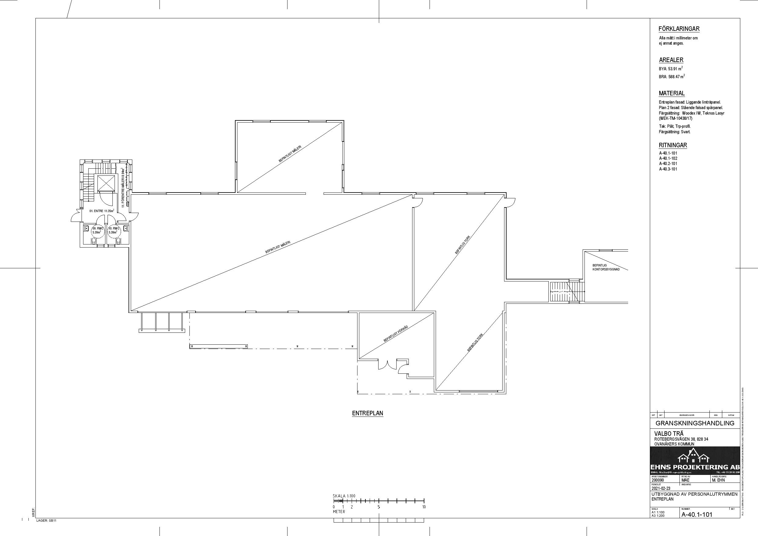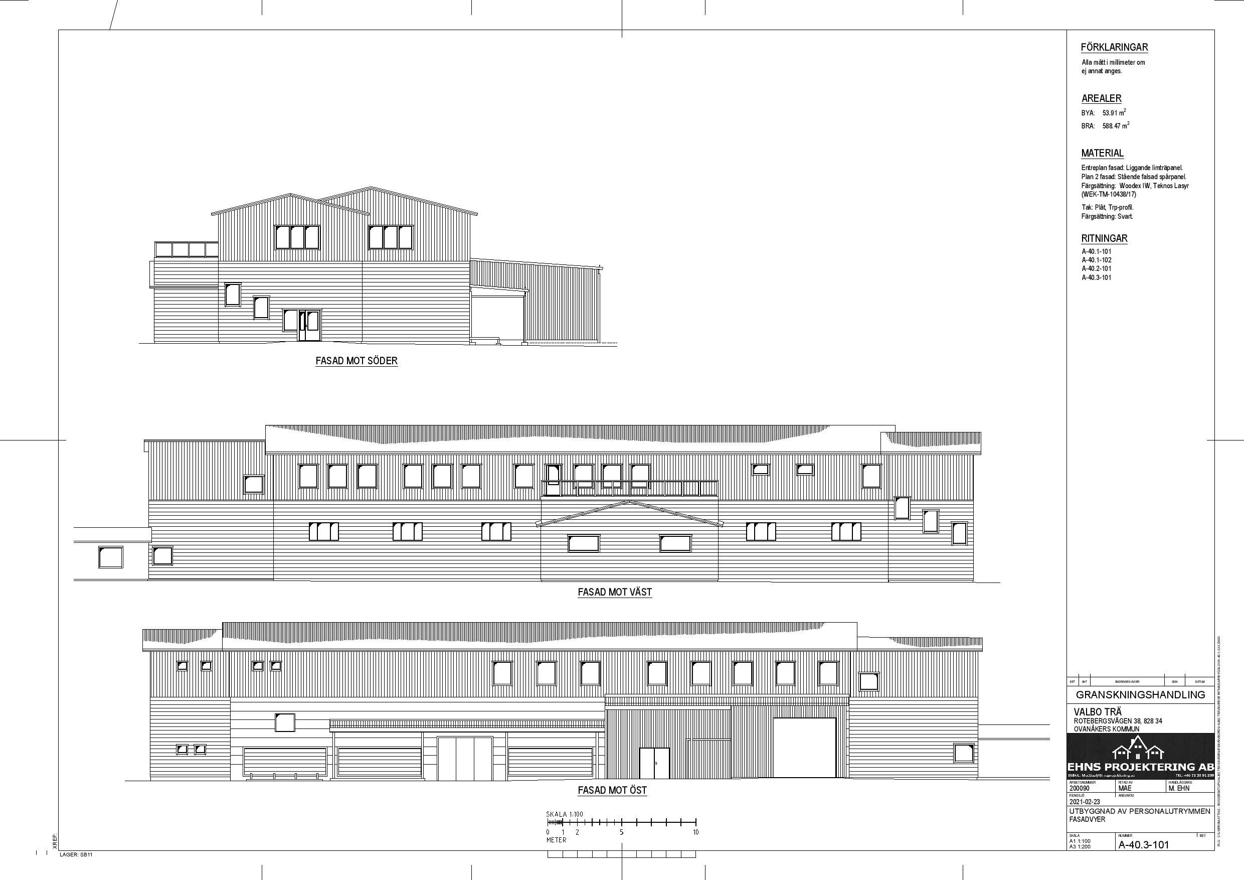Påbyggnad av 1st personalutrymme ovanpå befintligt måleri som skulle anslutas mot befintlig kontorsbyggnad.